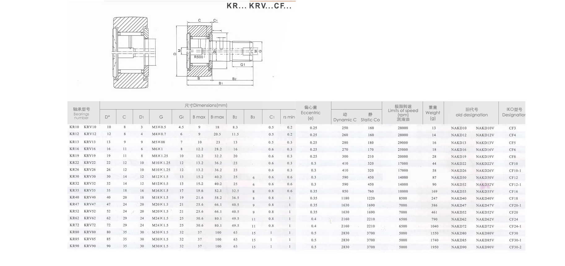 There are two major cam-type bearings in use; stud type and yoke type. In both types, a stem or shaft extends from the inner race. The stem can be either hollow to press onto a stub shaft (yoke type) or incorporate threads to be screwed into a corresponding threaded hole (stud type). Stud type cam bearings are typically a standard size but there are heavier studs available that can handle bigger static loads. Yoke types can support the same sized static loads as heavy studs but are best suited for applications that require minimal deflection.