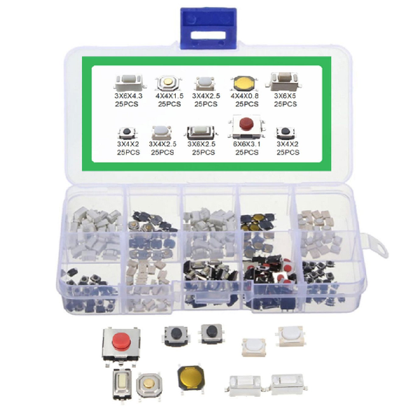 10-Types of SMD Tactile Pushbutton Switch kit (Normally Open), 250 pcs.