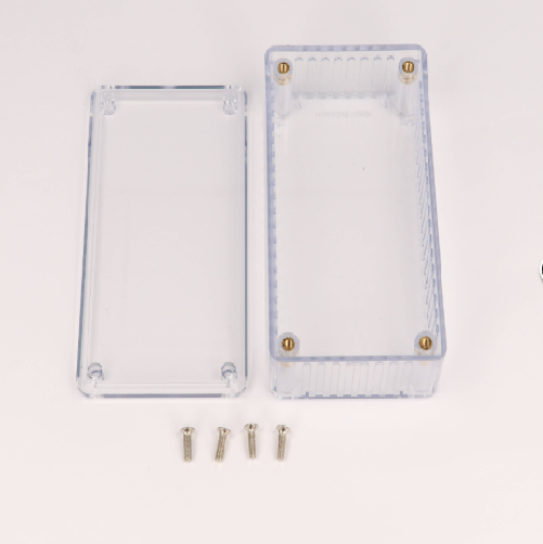 The Hammond 1591BTCL model is a clear polycarbonate enclosure measuring 112x 62x 31 mm., used in mounting circuit boards where critical parts can be displayed visibly.