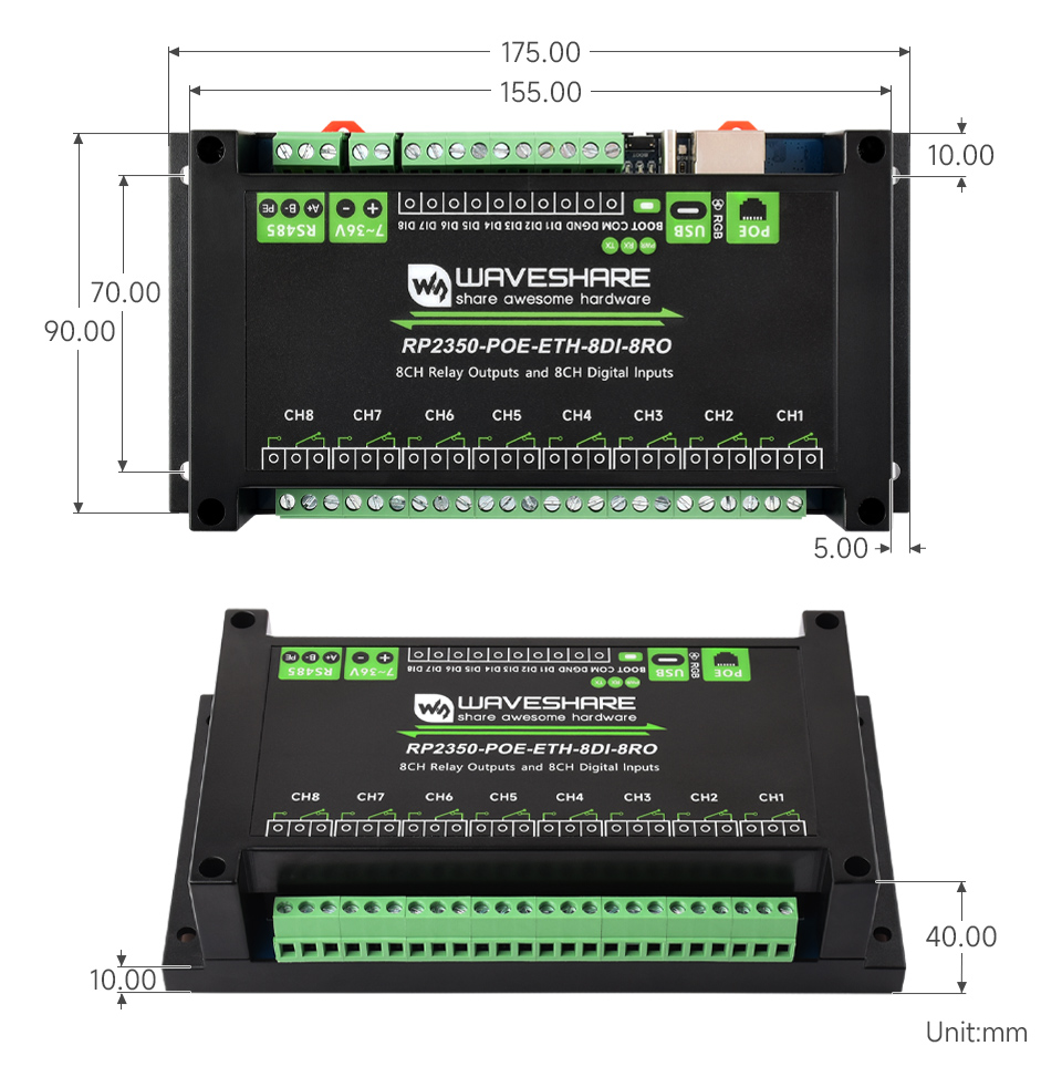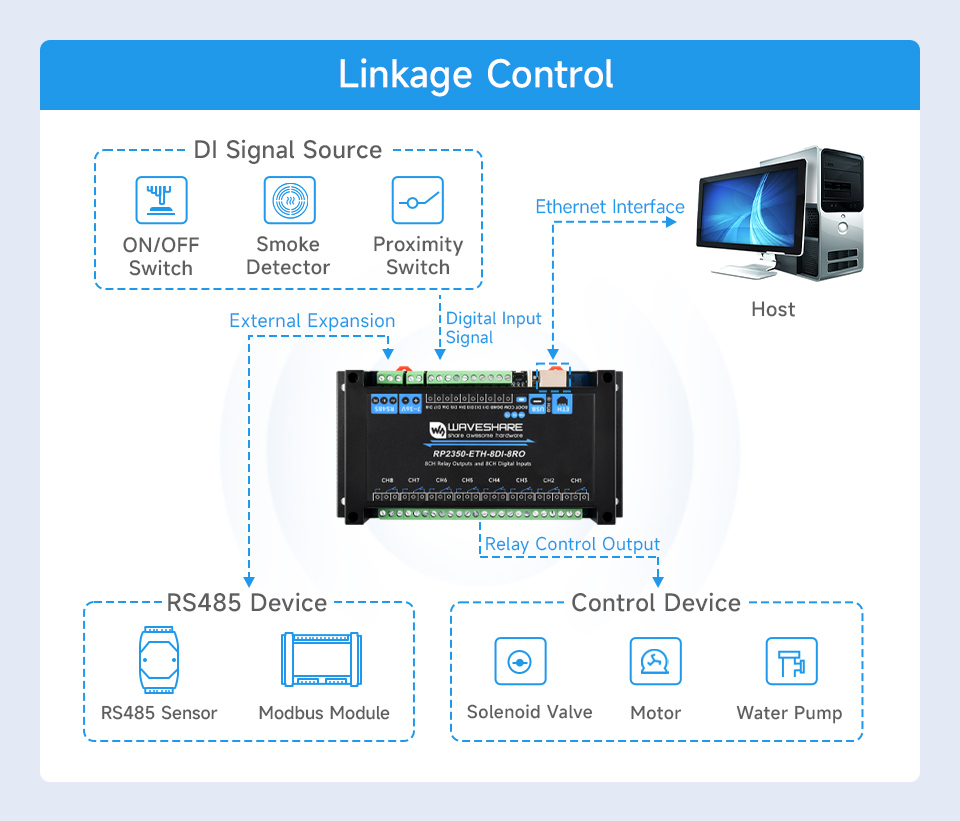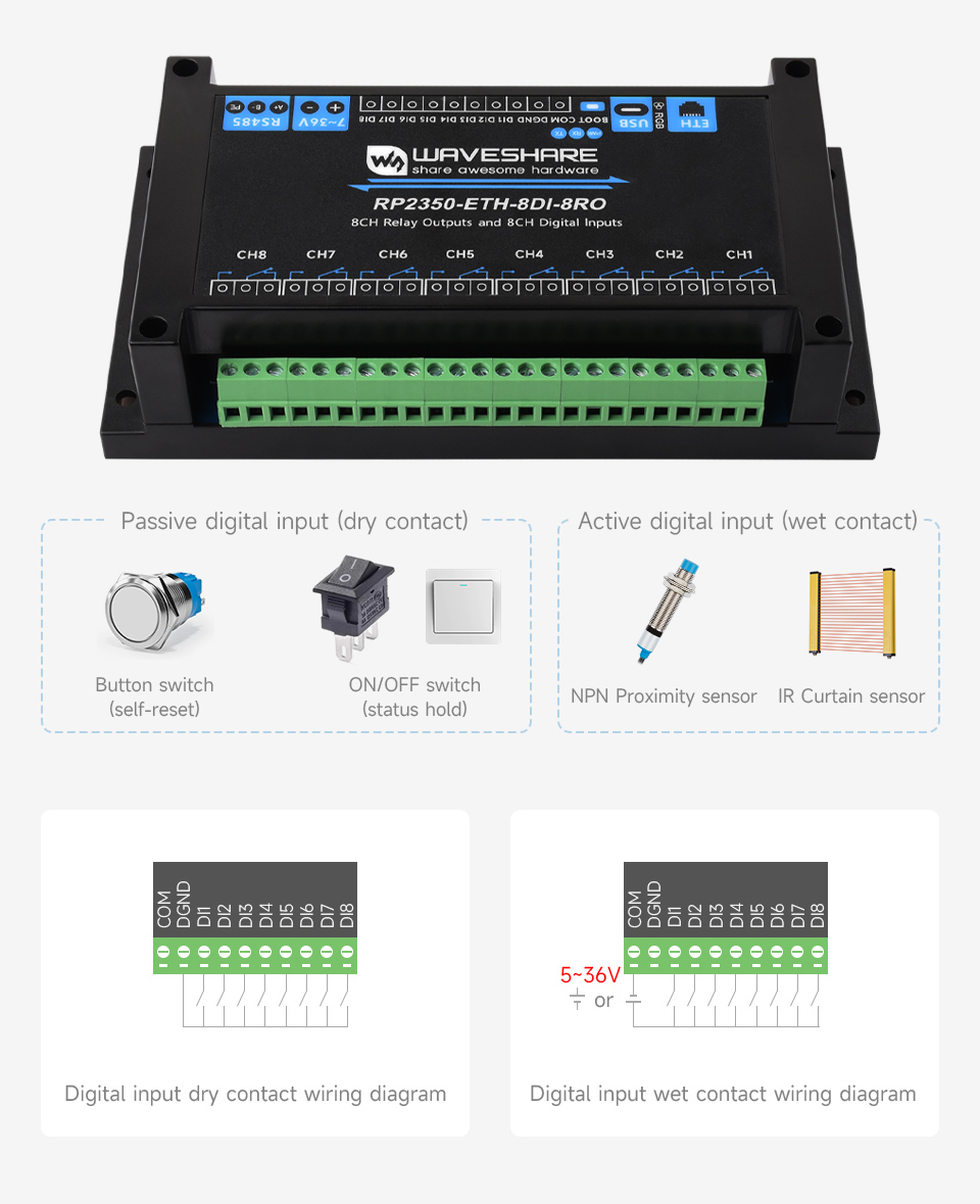 Based on RP2350, Supports digital input, RS485, and Ethernet port interfaces