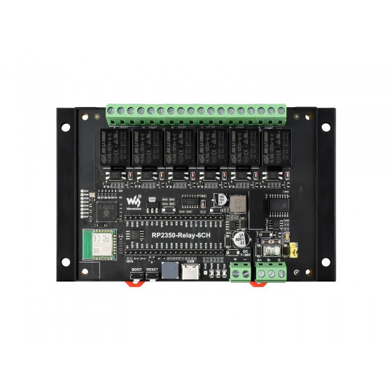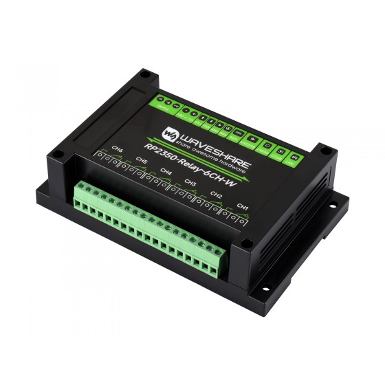 WAVE-32576, 6-Channel RP2350 Din Rail Relay Module, with Onboard RS485/Pico HAT interfaces with Wi-Fi Module