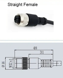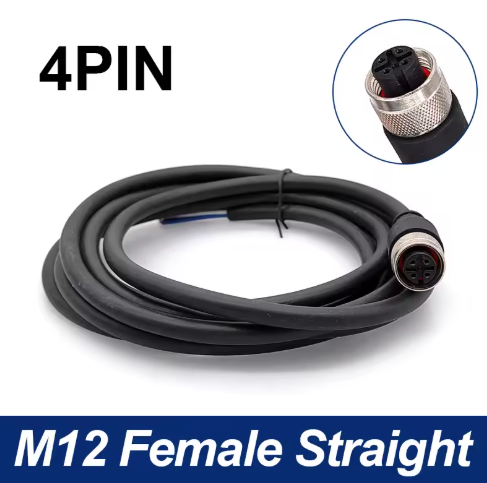 This M12 straight connector cable with female plug is designed for sensors and industrial applications, featuring a waterproof 4-pin connector.