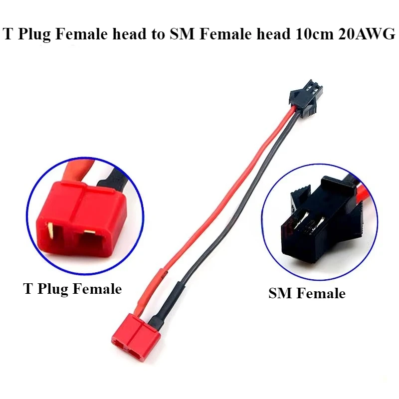 This cable features a T-Plug (Deans) Female on one end and an SM Female connector on the other. Built with flexible 20AWG silicone wire, ideal for RC batteries, chargers, and small electronic projects.