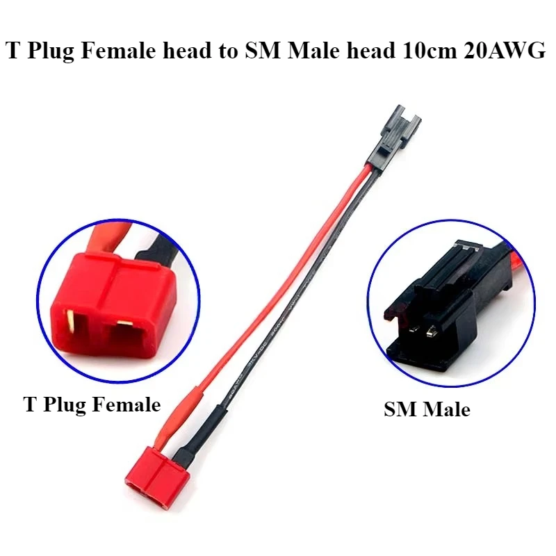 This cable features a T-Plug (Deans) Female on one end and an SM Female connector on the other. Built with flexible 20AWG silicone wire, ideal for RC batteries, chargers, and small electronic projects.
