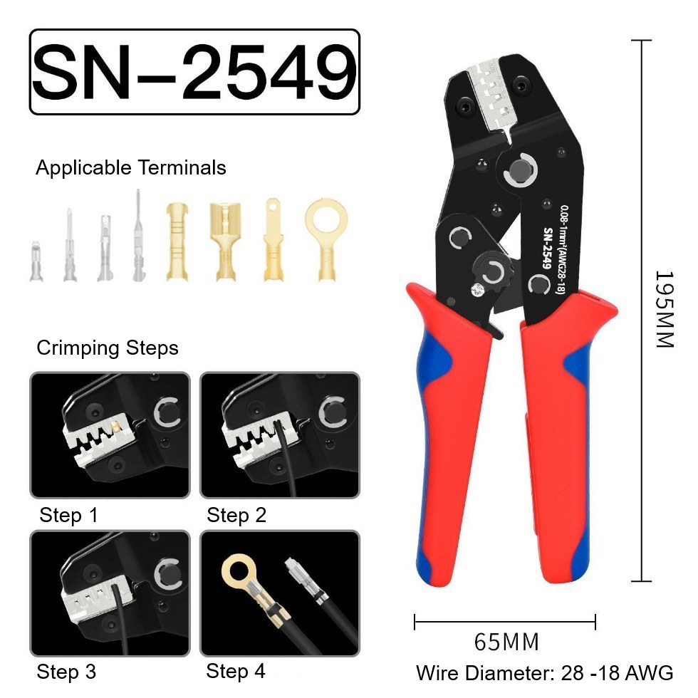 This is a Tab 2.8 Terminals Crimper SN-2549 for 0.08-1.0mm² (AWG 28-18) Terminals.