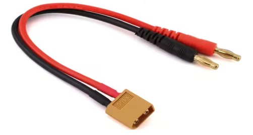 Charging cable for RC LiPo batteries. Featuring 14AWG silicone wire and gold-plated connectors. The XT60 male connector is universally compatible with all XT60 plugs.
