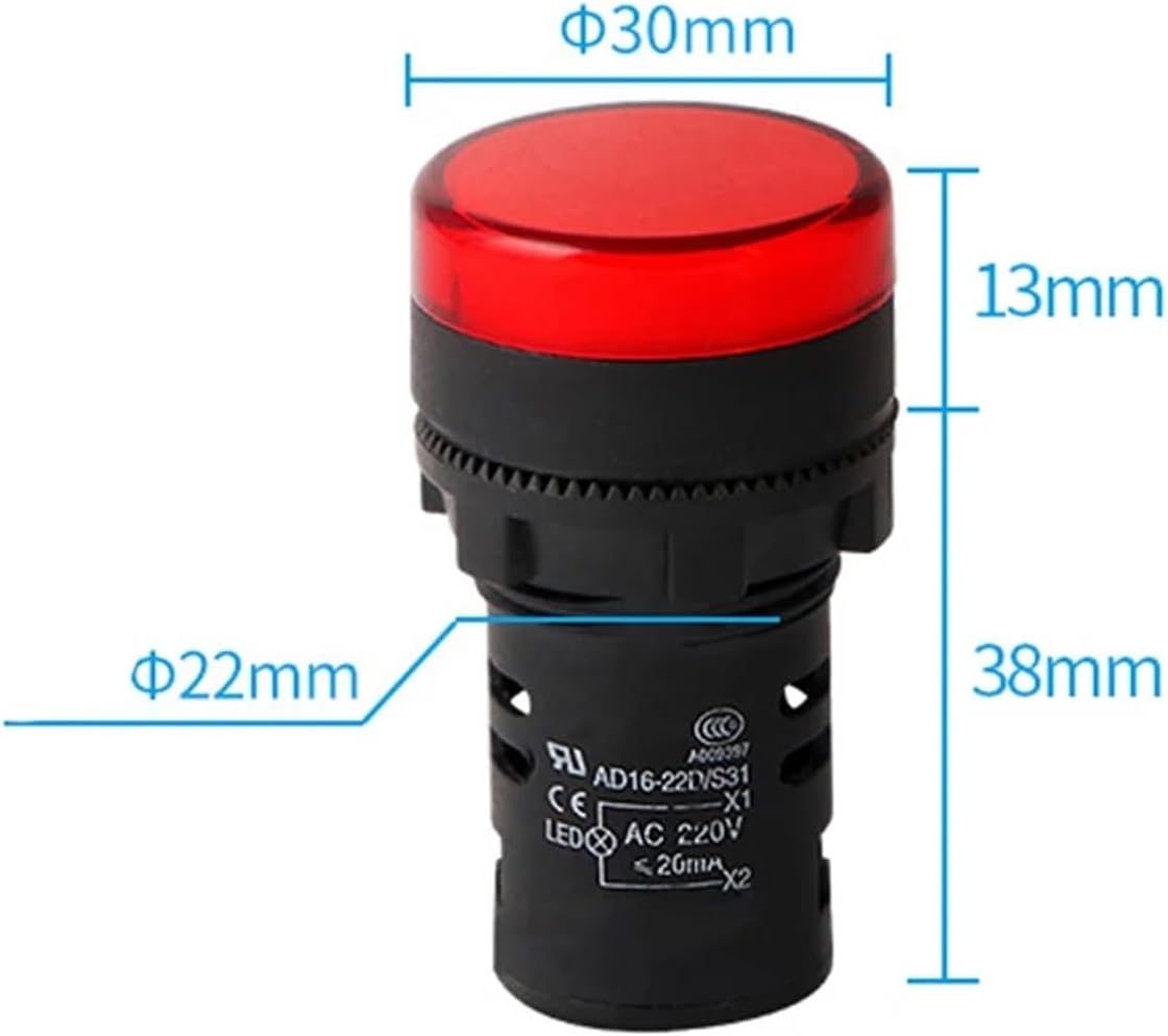 AD16-22DS-220V-BL 220V AC 22mm Blue Panel Mount LED Indicator Light
