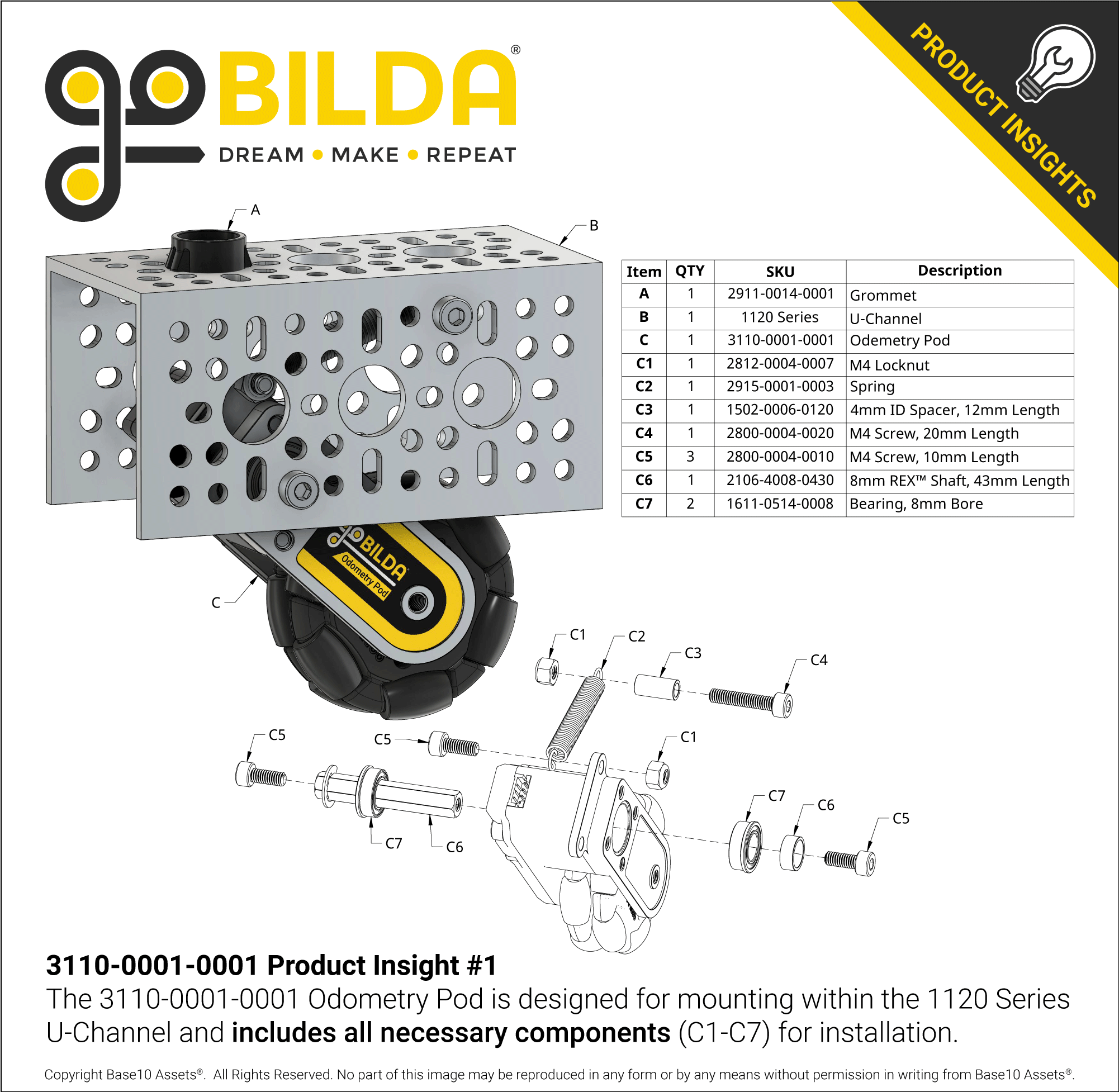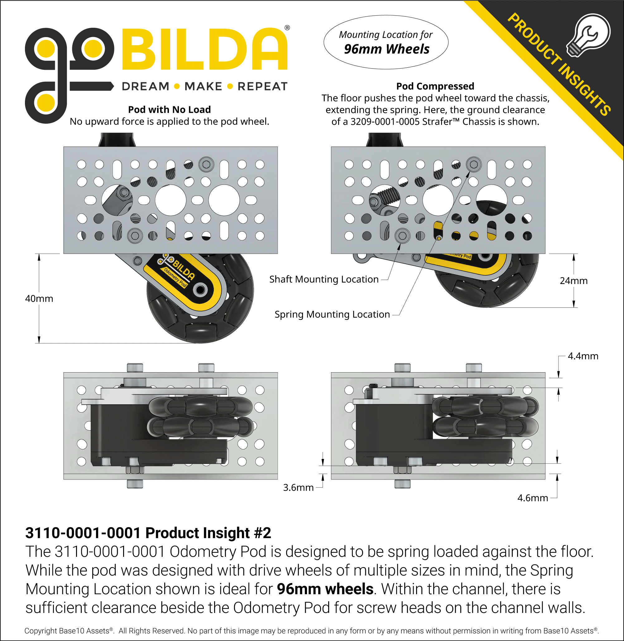 Designed from the heft of FTC experience in the goBILDA® R&D team, this Odometry Pod innovates to a higher level than comparable alternatives. The Swingarm Odometry Pod: