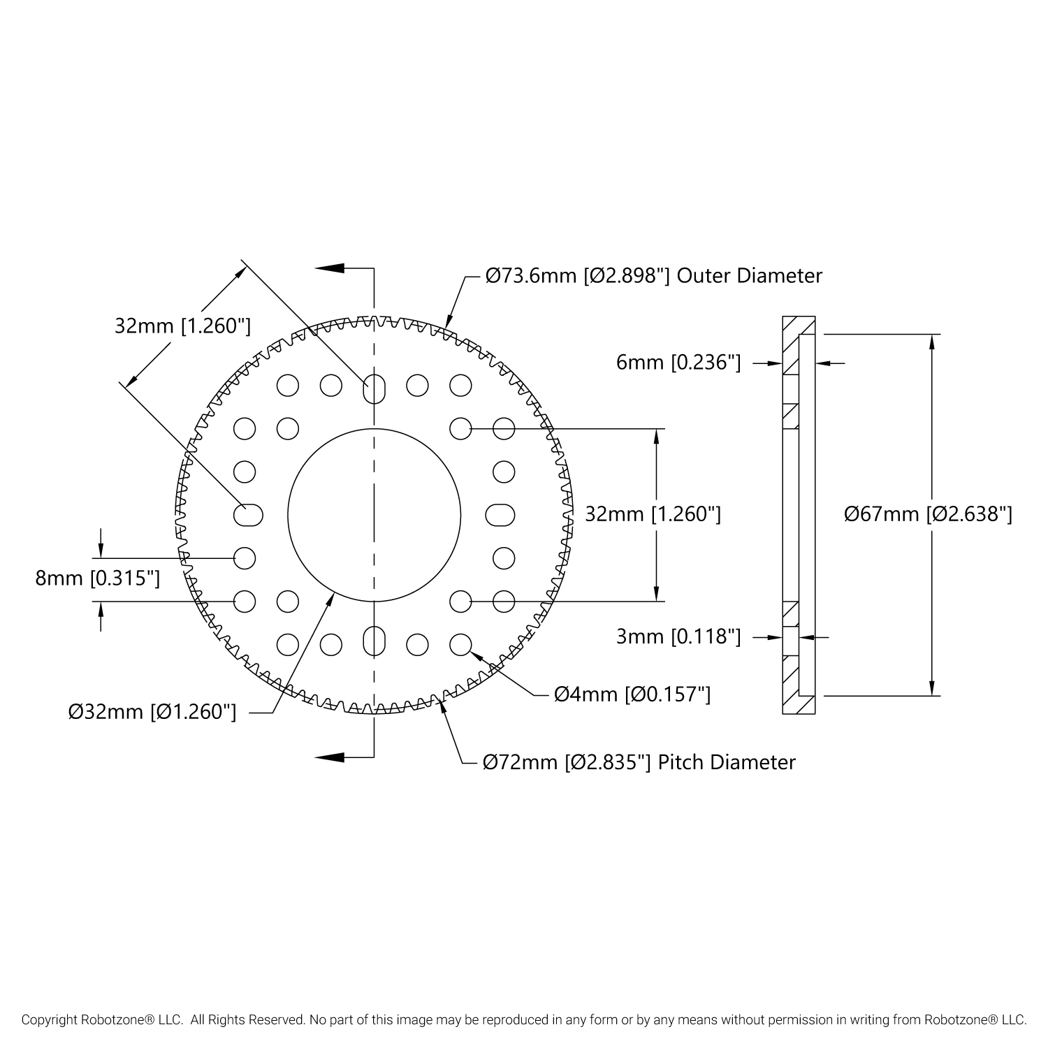 2302-0032-0090, (32mm Bore, 90 Tooth) 2302 Series Aluminum, MOD 0.8, Hub Mount Gear