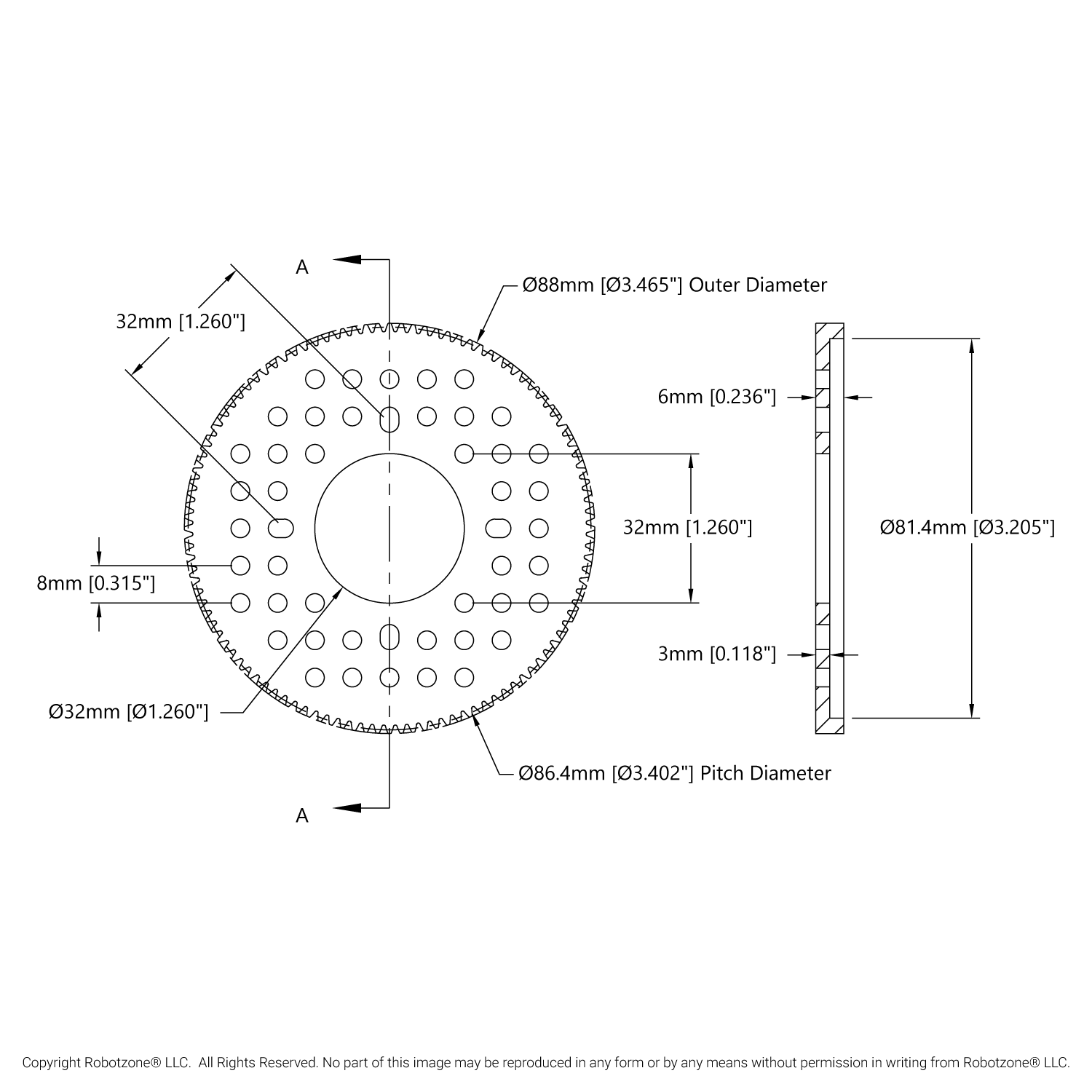 2302-0032-0108, (32mm Bore, 108 Tooth) 2302 Series Aluminum, MOD 0.8, Hub Mount Gear