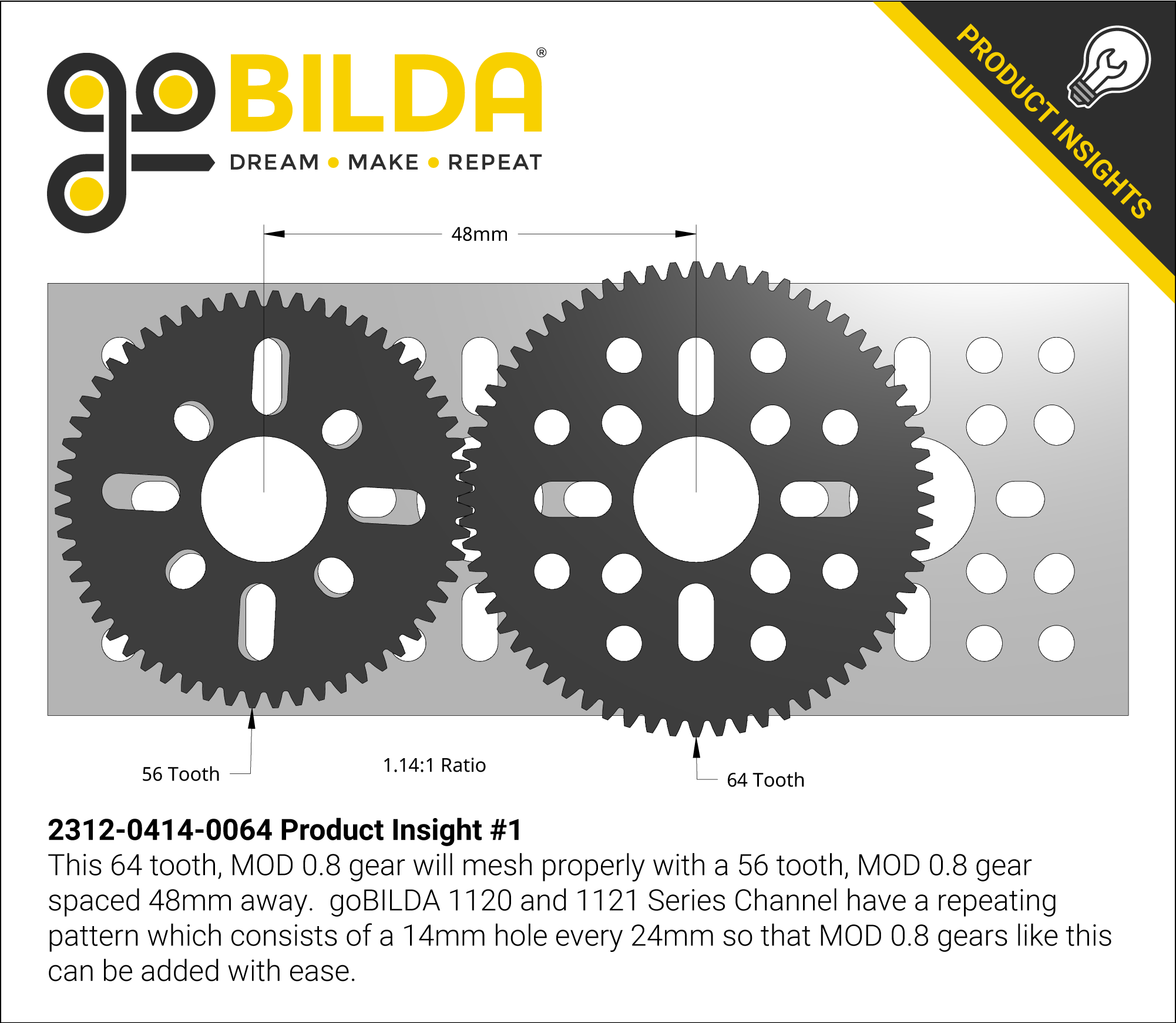 2312-0414-0064, 64 Tooth Hub-Mount Gear (MOD 0.8, 4mm Thick Acetal)
