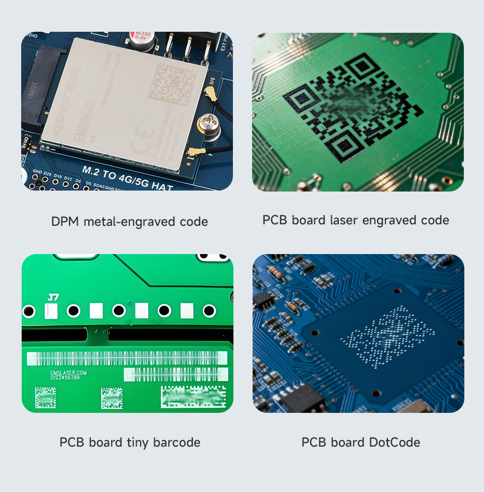 Compatible with various industrial carriers such as metal-engraved codes and PCB-engraved codes, enabling easy scanning of industrial barcodes including DotCode and DataMatrix (DM).