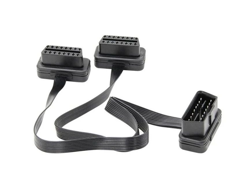 Male to Dual Female Y Splitter (30cm), OBD2 extension cable designed for standard OBD2 DLC ports. Ideal for use with scan tools such as ELM327 Bluetooth adapters, this extension allows you to relocate your device if the port is hard to reach or interferes with driving.