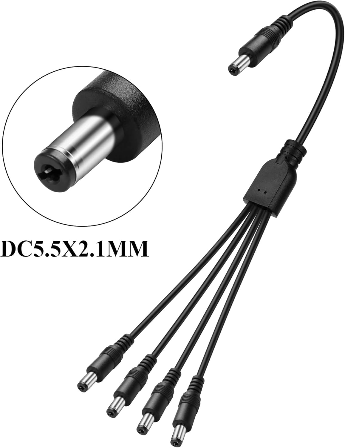 1 Female to 4 Male (5.5×2.1 mm, 40 cm) - DC Power Splitter Cable, used in router, LED Strip Light, Printer, Monitor, Camera, TV Box and more.